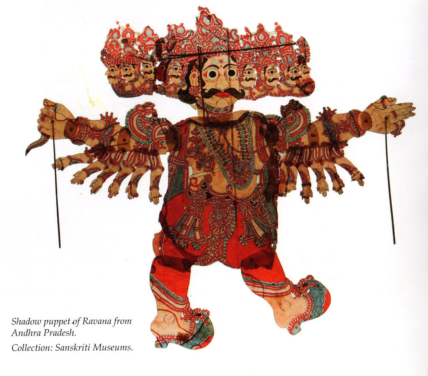 The ornate and striking leather shadow puppets depicting characters from Hindu